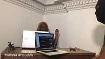 slave is slacking today though so Mistress decides to put him to use in another part of office duties.
